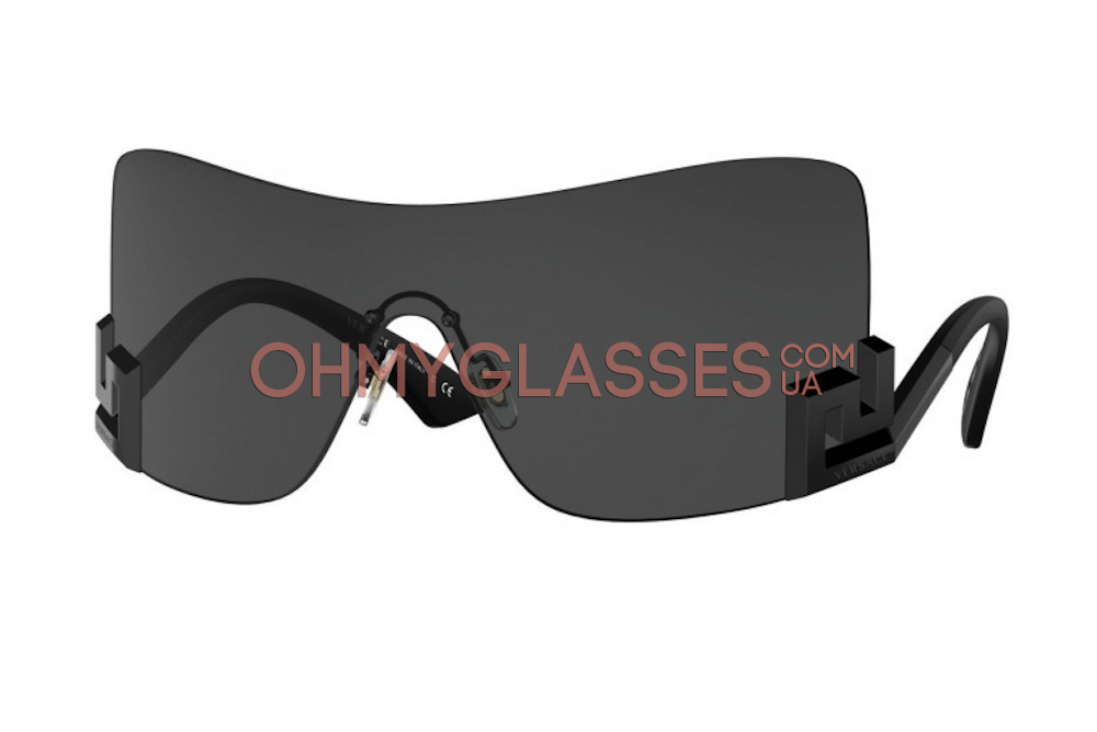 Солнцезащитные очки «прямоугольная маска» Versace VE 1256/87 исполнена в черной пластиковой оправе с темно серыми линзами из поликарбоната, а так же деталировками в виде фирменных логотипов на дужках, отлично дополнят любой образ.